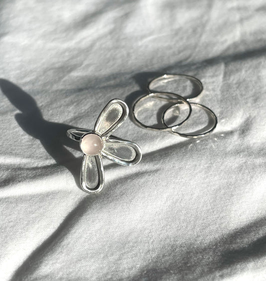 Rose Quartz Flower Ring